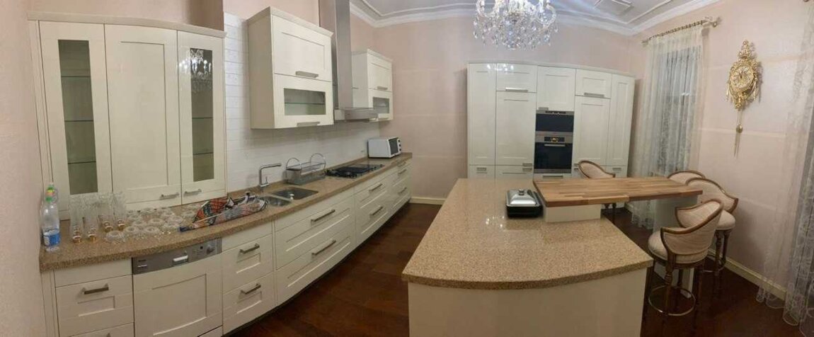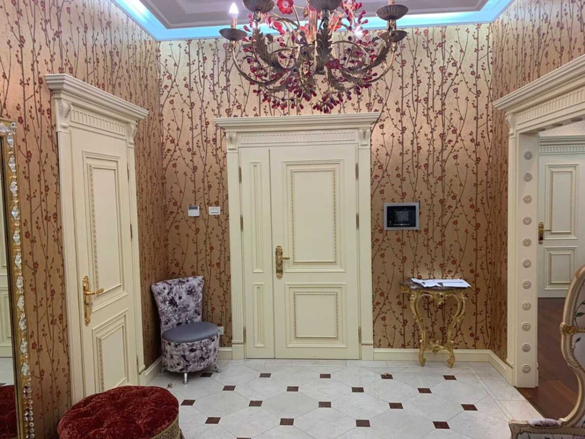 Вишукана чотирикімнатна квартира в історичному центрі Києва. Квартира розташована на 2-му поверсі 6-ти поверхового елітного будинку царської епохи. Загальна площа квартири 277 кв.м., житлова 168 кв.м., кухні 23,4 кв.м., висота стелі 3,8 метра. Ремонт у класичному стилі виконано з використанням високоякісних натуральних матеріалів.