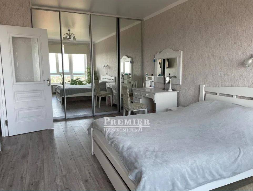 Квартира з новим стильним ремонтом, вбудована велика вбиральня, встановлена тепла підлога, нові меблі та техніка. Панорамні вікна з чудовим видом на море.