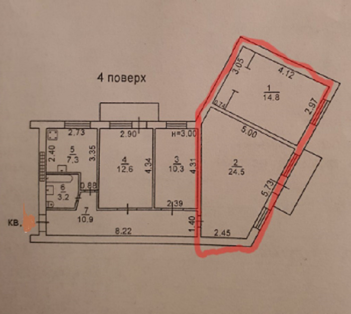 Две комнаты в 4-комнатной квартире на Фонтанской дороге