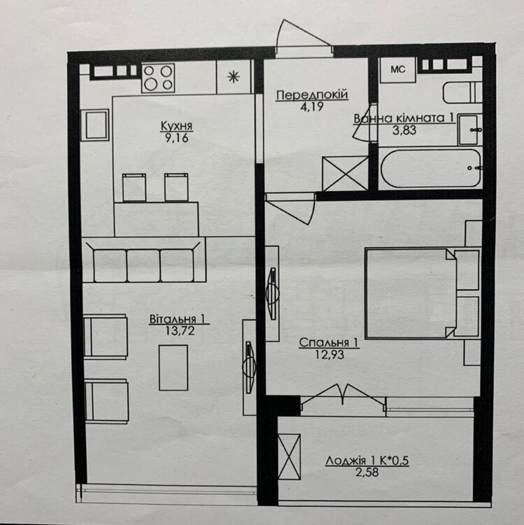 Житлова площа12.9 м²