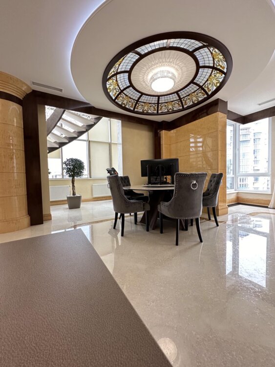 Малоквартирный жилой комплекс "VIP" класса ЖК "Ясная Поляна"/ ул.Отрадная в историческом районе города. Морская сторона.Рядом театр Музкомедии, парк Шевченко, море, 10 минут и Дерибасовская.Закрытая и охраняемая территория комплекса. Подземный паркинг.Двухуровневый пентхаус общей площадью - 240 кв.м. Первый уровень: кухня-гостиная, спальня, санузел с панорамным остеклением (ванная). Терраса с красивым видом на море. Роскошная лестница ведет на второй уровень, где расположены:- кабинет- спальня- гардеробная- санузел с панорамным остеклением (ванная), хамам. Высокие потолки.В квартире панорамные окна, витражи.Система"теплый пол".В цену входит вся мебель, техника и предметы интерьера.ID 38111