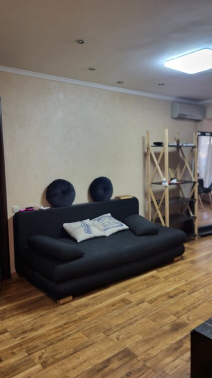 Квартира перепланирована в кухню- студию и спальнюБольшой расширенный балкон на комнату и кухню.Всторенная мебель, бытовая техника.Санузел совмещен.Супермаркеты. Садик. ID 39860