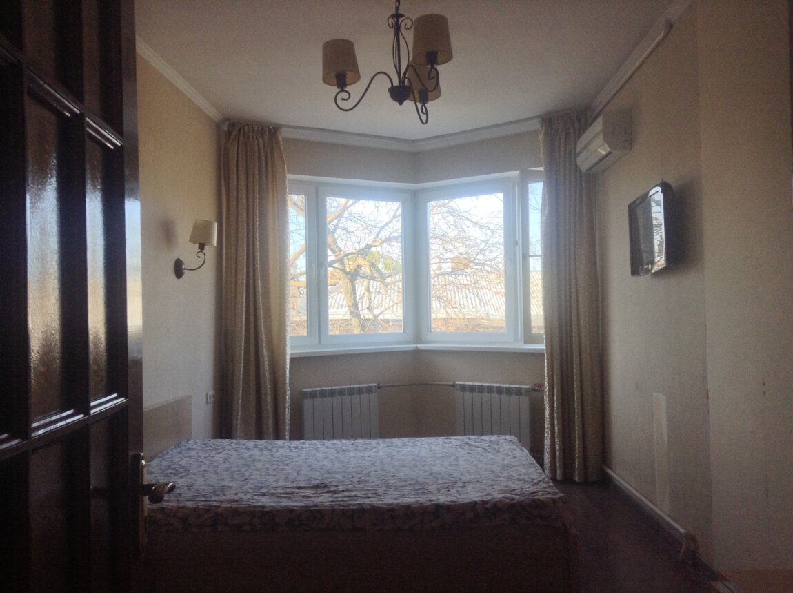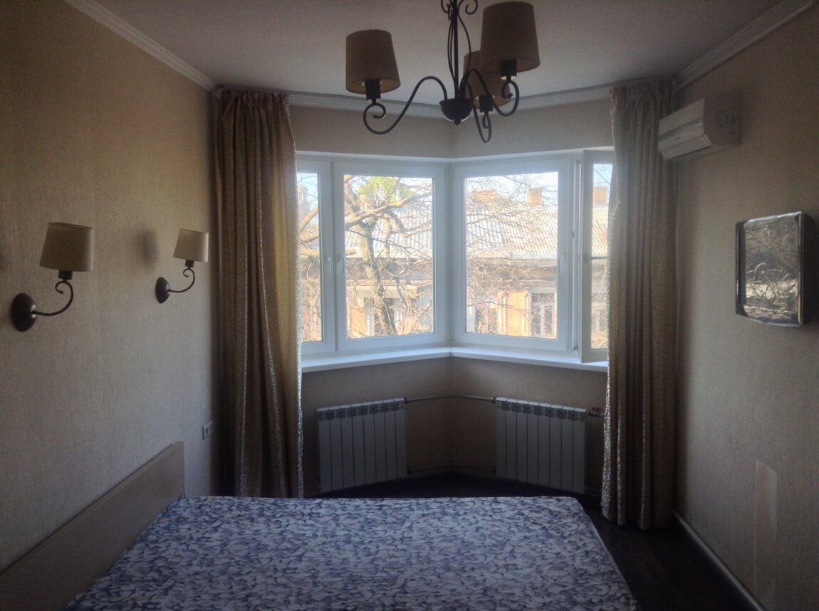 Квартира с раздельными комнатами, общей пл. 60 кв. м. Просторная гостиная пл. 23 кв. м. с выходом на застекленный балкон. Спальня с эркером. С/у совмещен. В каждой из комнат - кондиционер. Два бойлера. Остается мебель и бытовая техника. Большой тамбур на две квартиры. Парадная и двор закрыты. Рядом сквер с бюветом, близко к Привозу, морю, к Дерибасовской