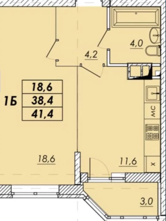 Загальна площа41.4 м²
