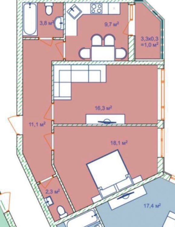 Житлова площа35 м²
