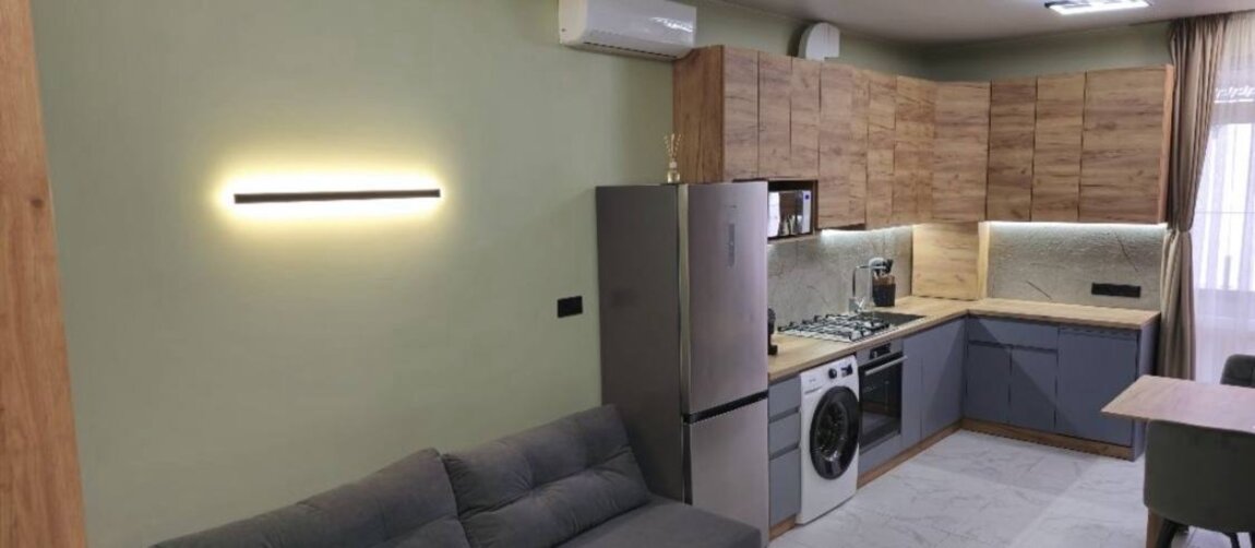 32911. Продам стильную 1-комнатную квартиру площадью 44 м² в современном жилом комплексе «Авиньон» с панорамным видом на море и город. Квартира с продуманной планировкой и дизайнерским ремонтом, выполненным из качественных материалов. Просторная терраса со стеклянными перилами и зашитым потолком — идеальное место для отдыха. Установлен двухконтурный газовый котёл, индивидуальные радиаторы, комбинированная система горячего водоснабжения (газ + электро).Ванная комната оснащена встроенной сантехникой, ванной с терморегулятором и зеркалом с подогревом. Инверторные кондиционеры в обеих комнатах создают комфорт, система помпового осмоса обеспечивает качественную питьевую воду. Квартира полностью укомплектована новой техникой: холодильник, духовой шкаф, варочная поверхность, посудомоечная и стиральная машины, кофемашина, микроволновка, телевизоры 42” и 55”. Есть гибридный инвертор для резервного питания котла, холодильника, освещения и интернета. Всё абсолютно новое, в том числе посуда и раскладной диван — ни разу не использовались.Жилой комплекс отличается современной архитектурой, ухоженной территорией и удобной локацией с развитой инфраструктурой. Квартира полностью готова к проживанию или сдаче в аренду с первого дня. Идеальный вариант для тех, кто ценит комфорт, качество и вид на море.