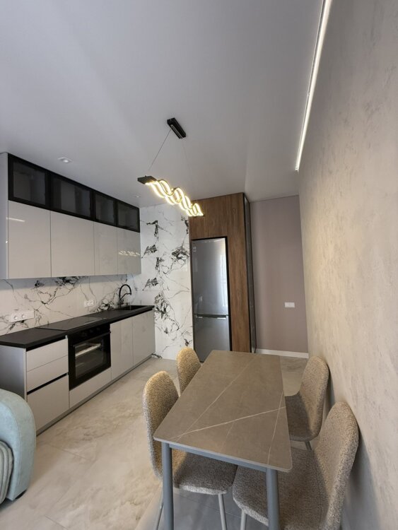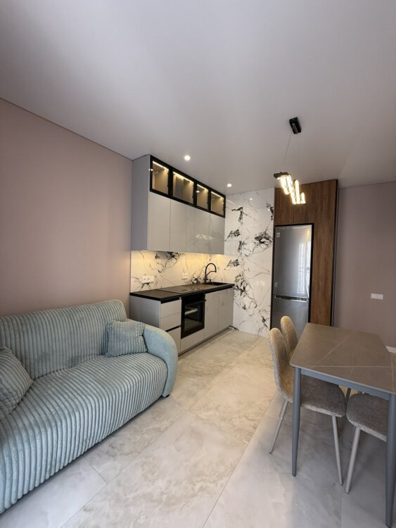 Продается красивая кухня-студия и спальня в ЖК " 63 Жемчужина "/ Краснова. Дизайнерский ремонт. Общая площадь 42.5 м. 12/24 эт. Укомплектована мебелью и бытовой техникой. Балкон. Закрытая охраняемая территория. Близость центра