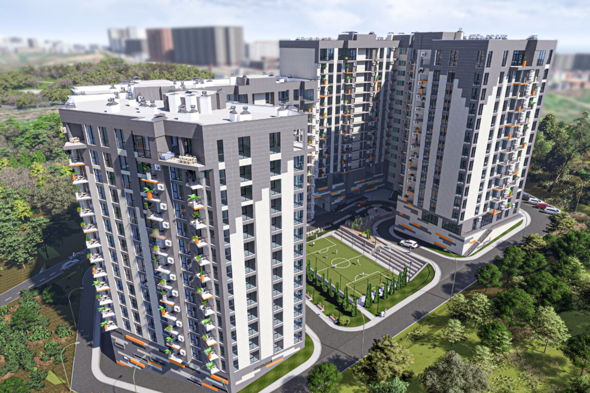 - чистый блок с безопасной и современной детской площадкой