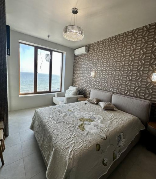 3 к Дача Ковалевского (Клаб Марин) 4/6 эт. Общая площадь 100м. Жилая 40м. Кухня-студия 25 м с действующим камином. Две спальни. Два санузла. Сделан эксклюзивный ремонт в современном стиле. Вся техника и мебель от известнейших европейских производителей. Есть парко место. Внутренний большой двор с бюветом. Конечная маршруток. 200 м Море. Парк 411 батарея.