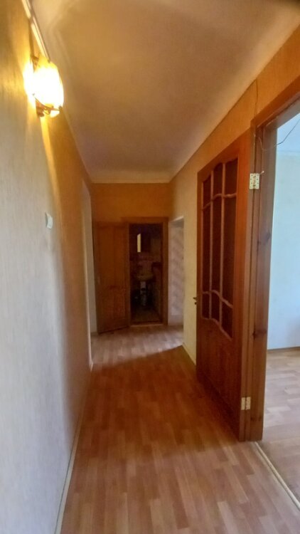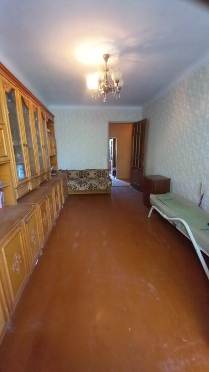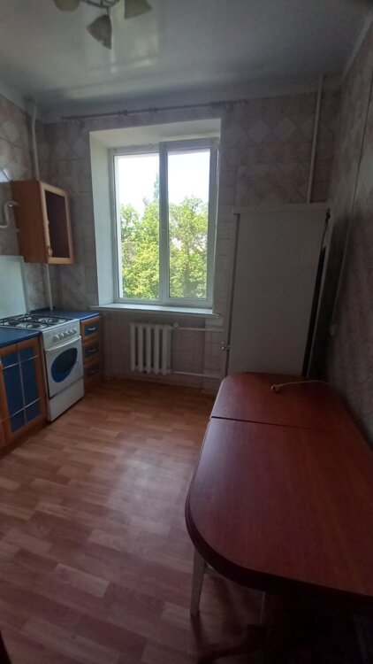 Сталінка, 4-й поверх 5-ти поверхового будинку, не кутова, кімнати роздільні, засклений балкон, роздільний санвузол. Загальна площа 52м2, житлова 32 м2, кухня 7м2.