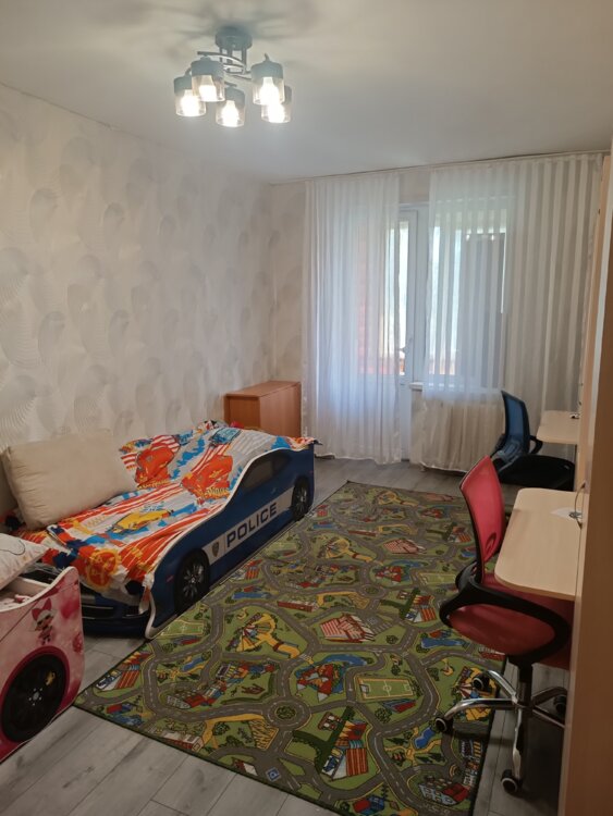 Рядом парк, Шериф, больница, детская поликлиника, садики, школы, аптека. 5 этаж, квартира не угловая, в середине дома, крыша не течет, теплая. Есть кондиционер, бойлер, большая тумба в ванной, встроенный шкаф купе в спальне, встроенная кухня, комод для обуви в коридоре, все это остаётся в квартире. По всей квартире ламинат, натяжные потолки (кроме комнат). Новая входная дверь (на фото старая)