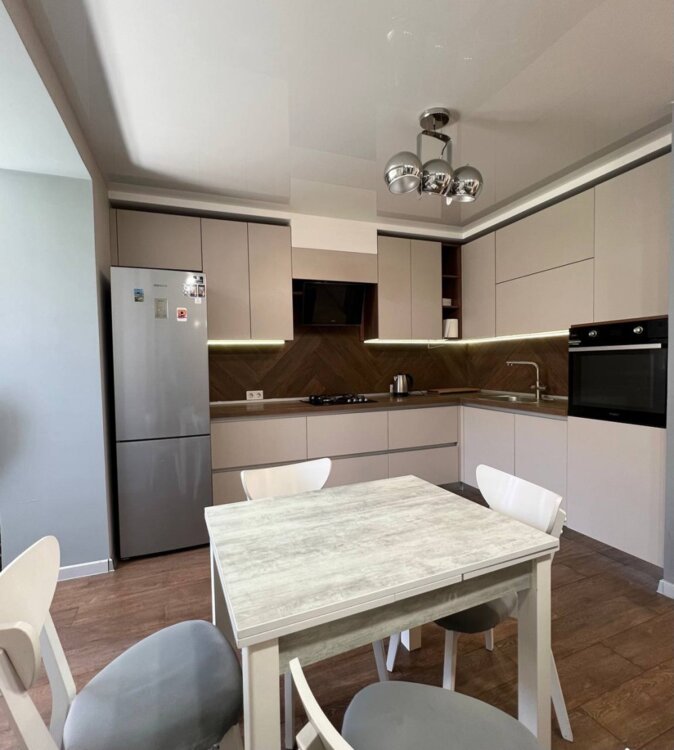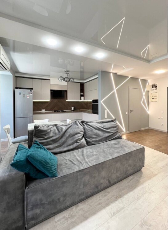 33844. Продаётся 1-комнатная квартира в кирпичном доме в Одессе. Общая площадь — 55 м². Выполнен дизайнерский ремонт с использованием качественных материалов. Квартира полностью укомплектована мебелью и техникой, которые остаются новым владельцам. Есть большая гардеробная и шкаф-купе. Кухня оборудована: холодильник, газовая плита, духовой шкаф, вытяжка. В ванной — бойлер, стиральная машина и кварцевая столешница. Установлены кондиционер, телевизор, скоростной интернет. В зоне кухни, гостиной и ванной — тёплый пол. Лоджия переоборудована в рабочее место или уютную зону отдыха. Двухкамерные стеклопакеты. Отопление обеспечивает собственная котельная.Удобная локация: рядом остановка, ПриватБанк, супермаркеты, аптеки, банки, хорошая транспортная развязка. До центра города — 20–30 минут, до рынка «7 км» — 10 минут.