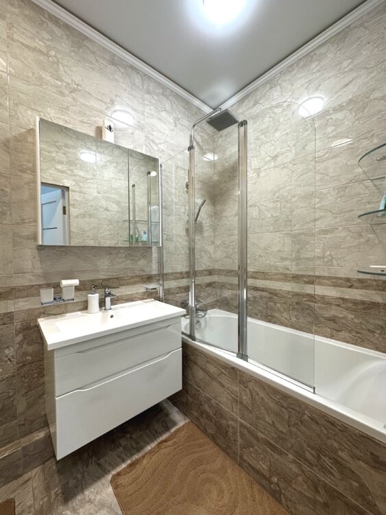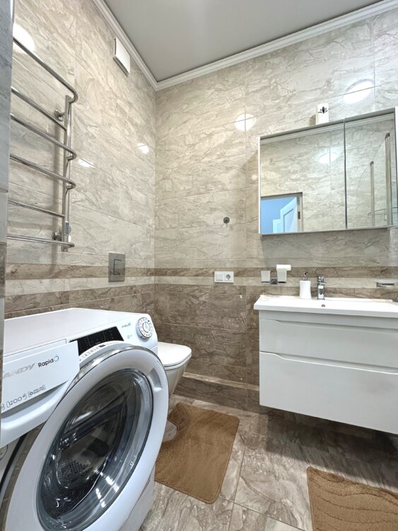 Квартира полностью укомплектована мебелью и техникой. Остается всё: посудомоечная машина, духовой шкаф, микроволновка, холодильник, четыре кондиционера, телевизоры в каждой комнате. Выполнен качественный и современный ремонт.