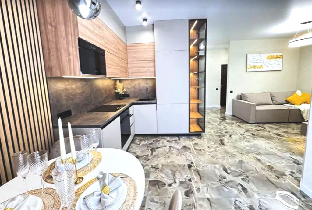 Однокомнатная квартира с дизайнерским ремонтом в Жемчужном квартале на Краснова.Пространство продумано до мелочей: стильный современный интерьер, качественная отделка, премиальная техника. Санузел облицован современной плиткой, установлена инсталляция и ванна. Территория комплекса закрытая, с круглосуточной охраной и системой доступа по чипам. Во дворе обустроены фонтаны, зоны для барбекю, уличные тренажёры и беговые дорожки. Это современное пространство для комфортной и безопасной жизни в одном из лучших районов города.ID 41628