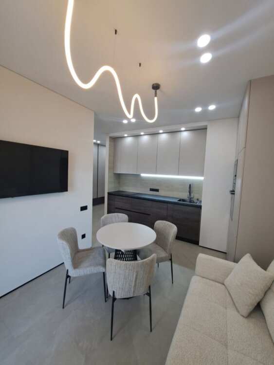 Квартира общ пл 43 м, спланирована в кухню-гостиную и отдельную спальню, выполнен стильный, дорогой ремонт в светлых тонах, полная комплектация отличной мебелью и всей бытовой техникой, встроенная кухонная мебель и техника, гардеробная. сан/узел с ванной и душевой кабиной, есть открытый балкон, комфортный этаж 5/24, вид во двор и на ул. Среднефонтанскую. Квартира свободна, продажа по переуступке. В квартире никто не проживал, всё новое, стоимость 70000 дол.