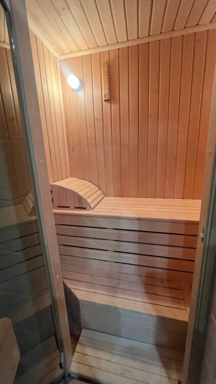 Продуманная планировка: кухня-гостиная, отдельная спальня, детская комната или кабинет с выходом на балкон, раздельный санузел (душ и ванная), и даже собственная сауна (! ), прихожая