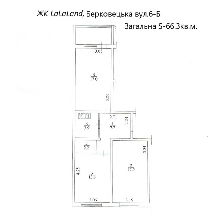ЗАГАЛЬНА площа - 66.3кв. м. Н-2.64м.
