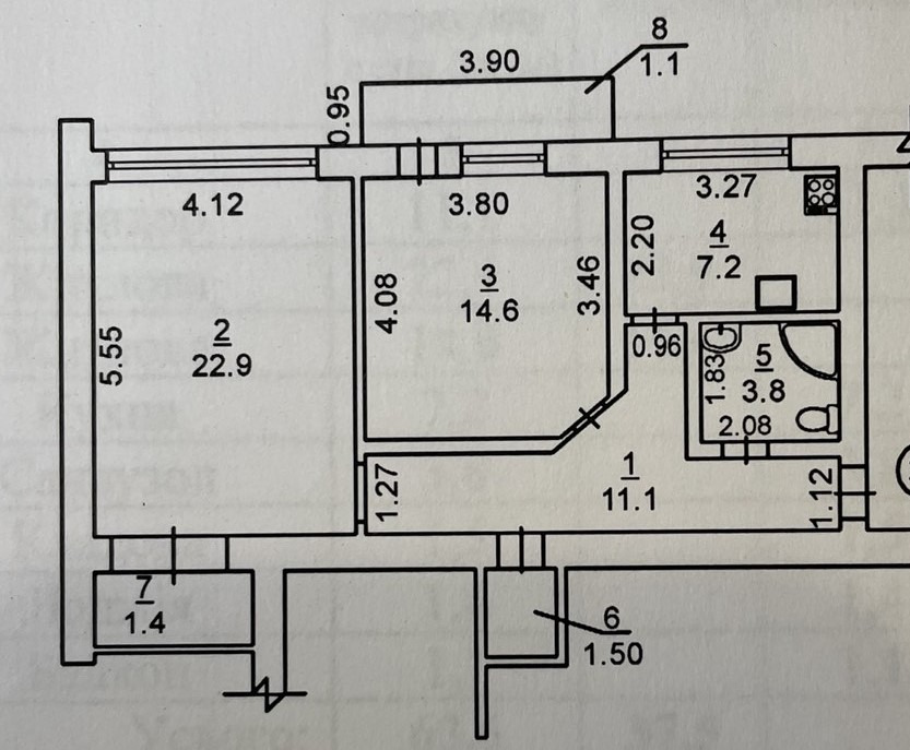 Площа кухні7 м²