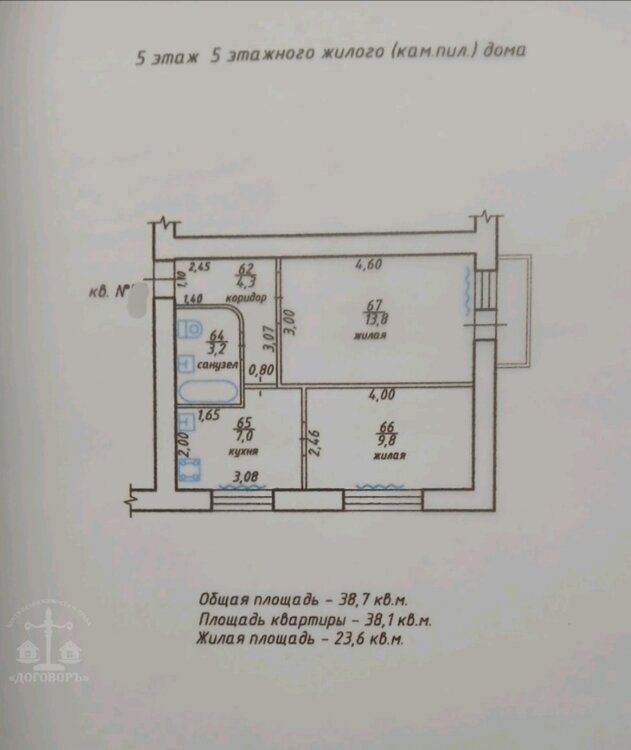- Общая площадь - 38,7 м²;
