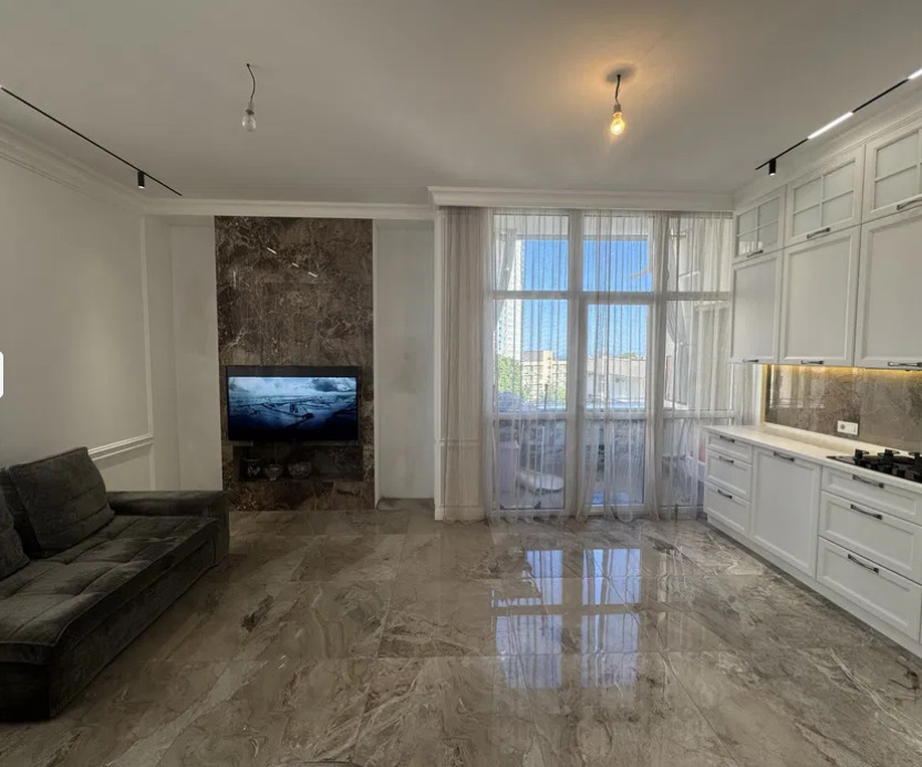 1к ЖК Мирный/ 9 станция Фонтанской дороги. 5/6 эт. Общая площадь 54 м. Кухня 12 м с выходом на балкон. Сан узел совмещен. Отопление - АГВ. В квартире современный качественный ремонт, очень стильная