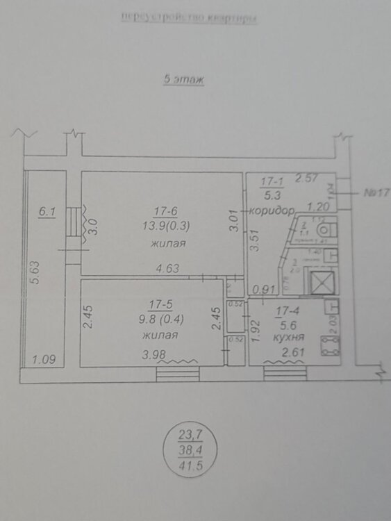 Общая площадь: 41,5 м²