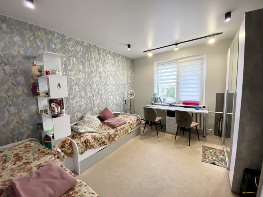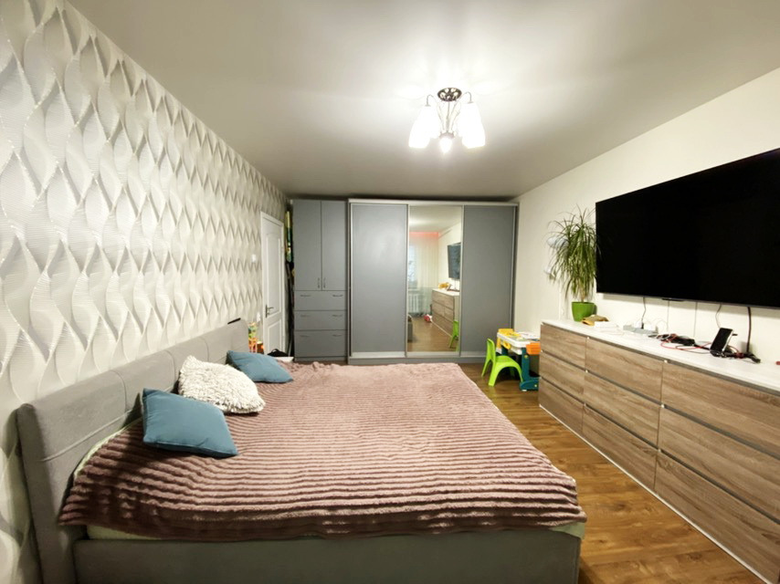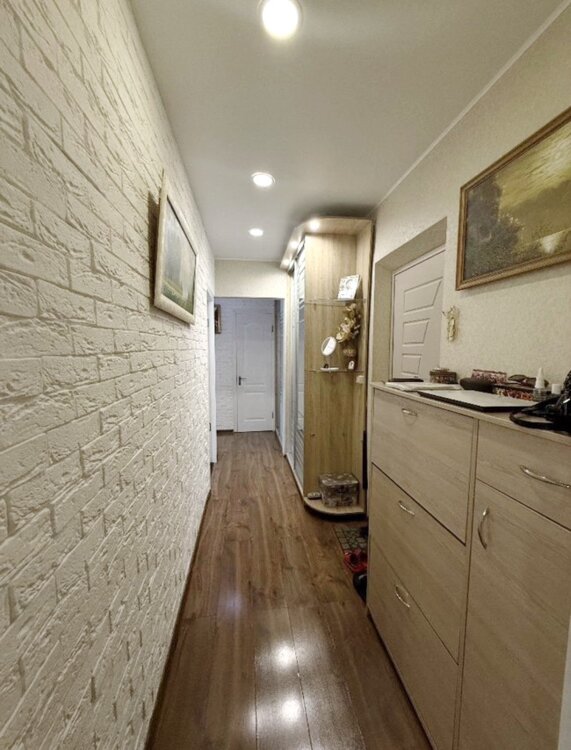 Квартира простора, загальною площею 53.6 кв. м., з ремонтом, не кутова, має зовнішнє утеплення, кімнати окремі та світлі.