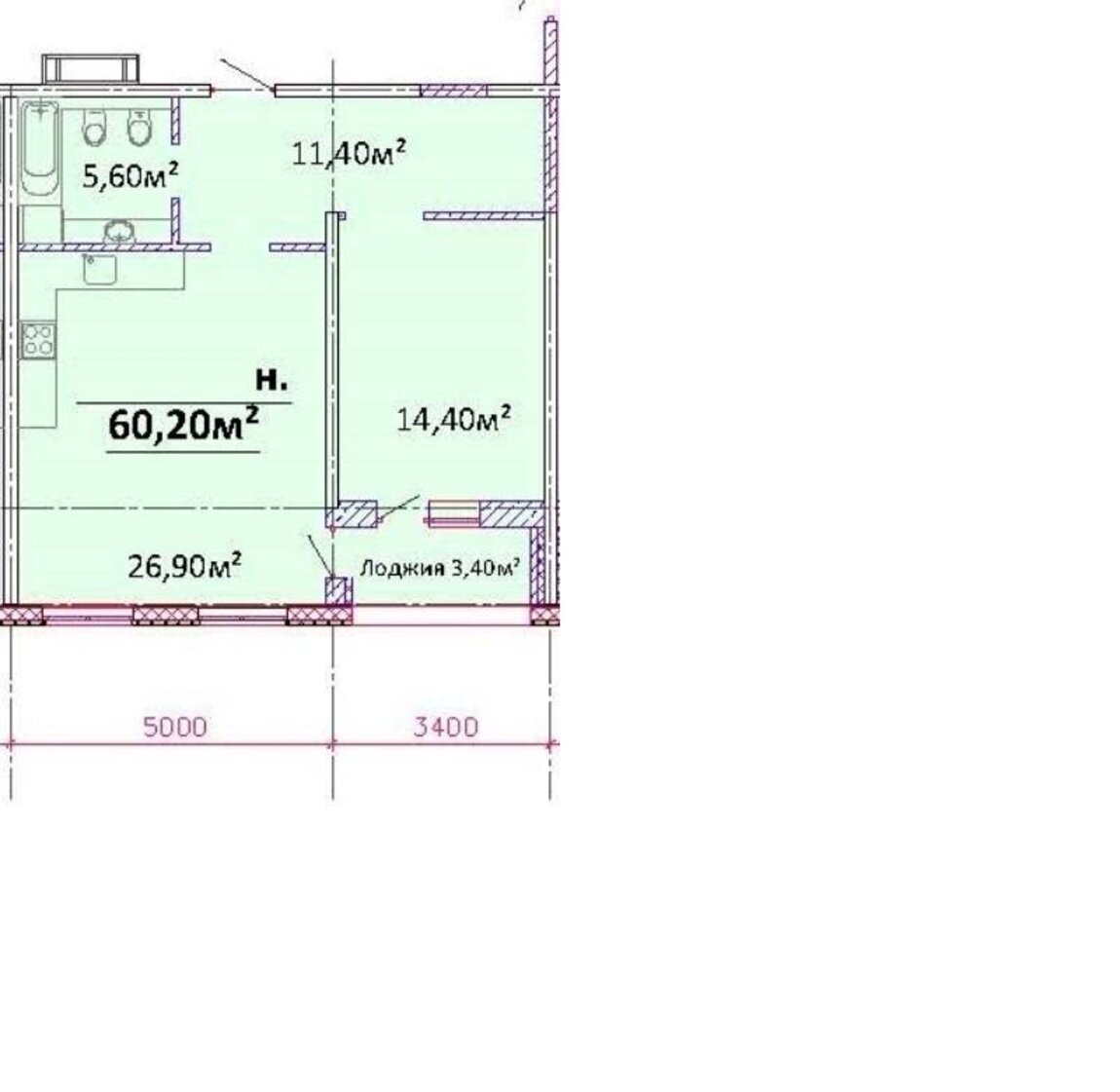 Загальна площа60 м²