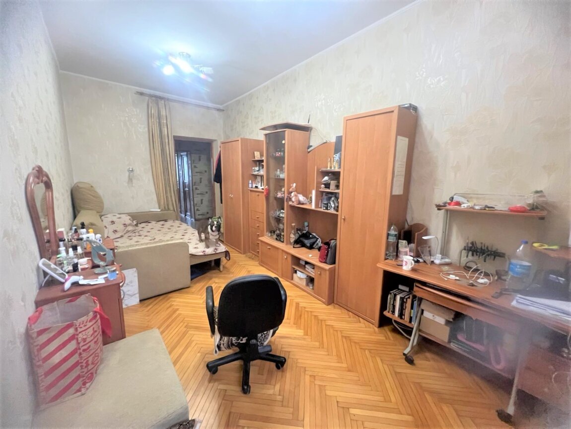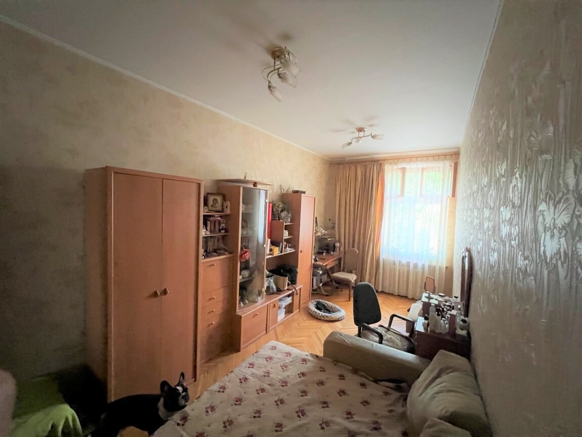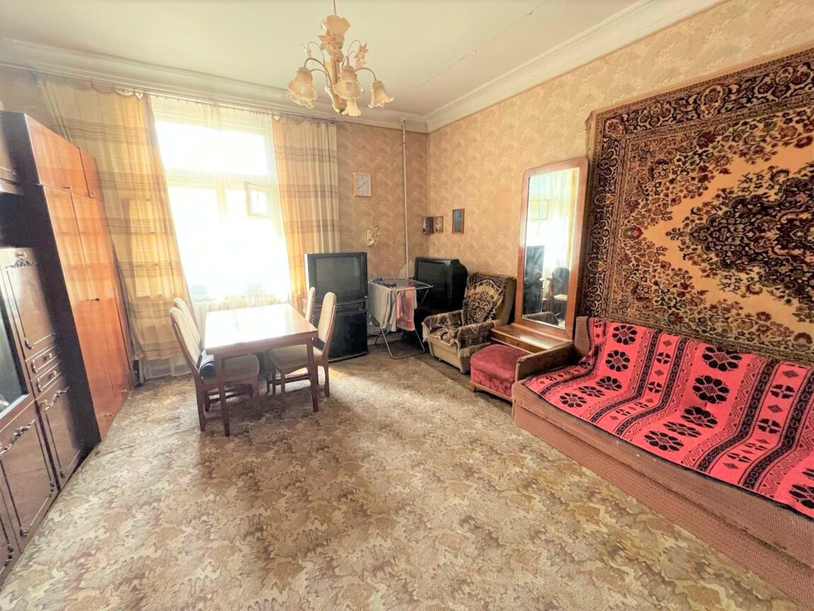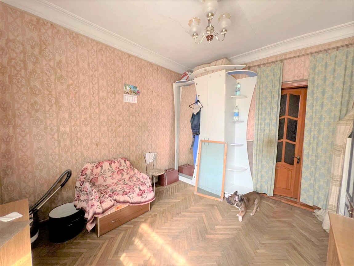 Квартира с высокими потолками и большими окнами, что создает атмосферу простора и света. Она состоит из трех комнат: две из них выходят во двор, а одна — на улицу, что позволяет наслаждаться как тишиной, так и городской жизнью.