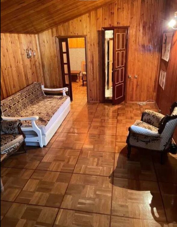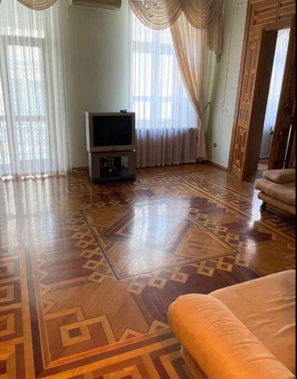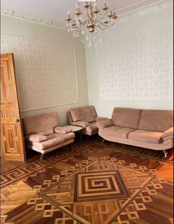 На полу натуральный паркет ухоженный, толстые стены 80 см, высокие потолки с лепкой
