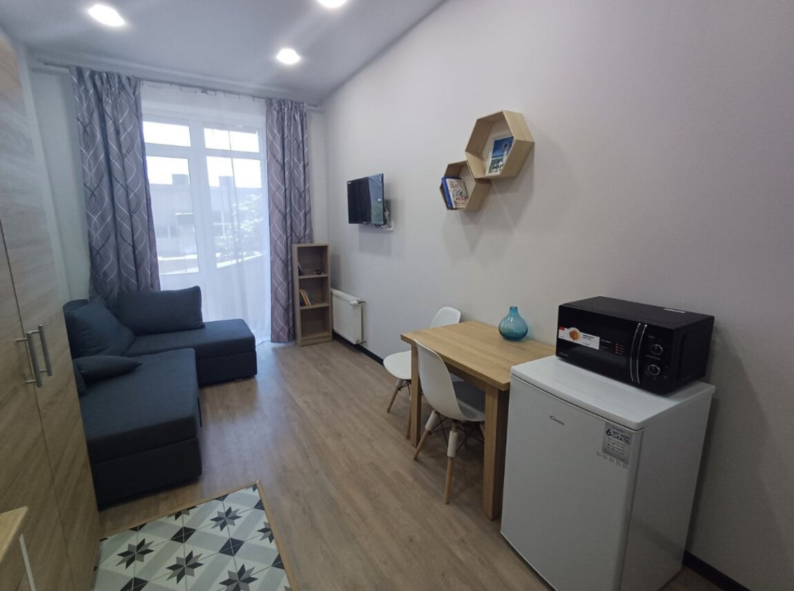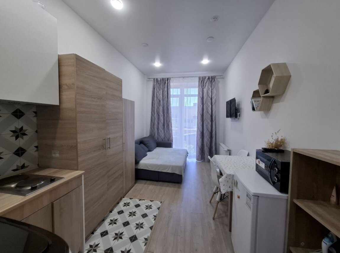 36296 продам квартиру студию со всеми удобствами, идеальное месторасположение,удачная планировка свежий ремонт,в квартире имеется все необходимое для комфортного проживания, вся мебель и бытовая техника остается, оставим даже посуду)-Дом заселен с 2021 г, закрытая зеленая территория, детская площадка, под круглосуточной охранной 24/7 .Кафе, супермаркет, фитнес центр, мед. центр, салон красоты, все это находится в доме -Так же имеется паркинг!Квартира идеальная как под бизнес (суточной аренды или длительной) так и для проживания, -Все готово!Заезжай и живи!)