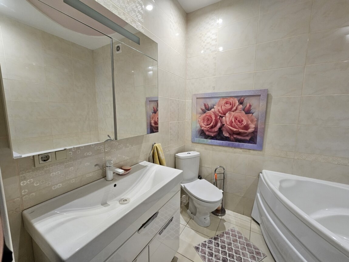 Площадь 91м2, спланирована как просторная кухня - гостиная, родительская и детская спальни (совмещены, можно разделить), 2 огромные лоджии, с/у.