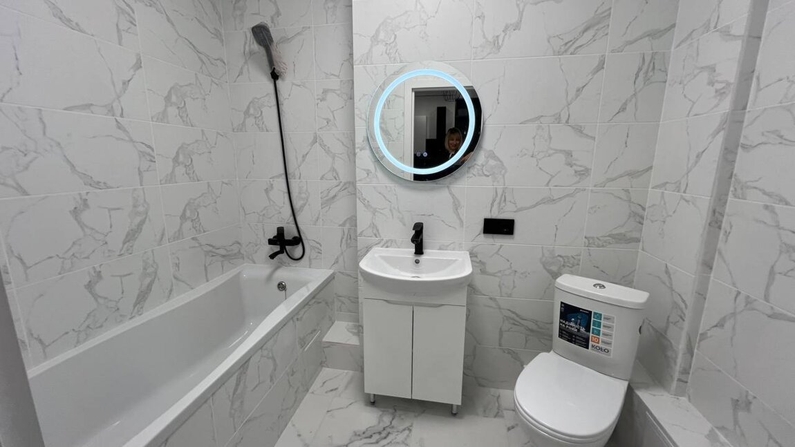 Свежий ремонт, санузел с ванной