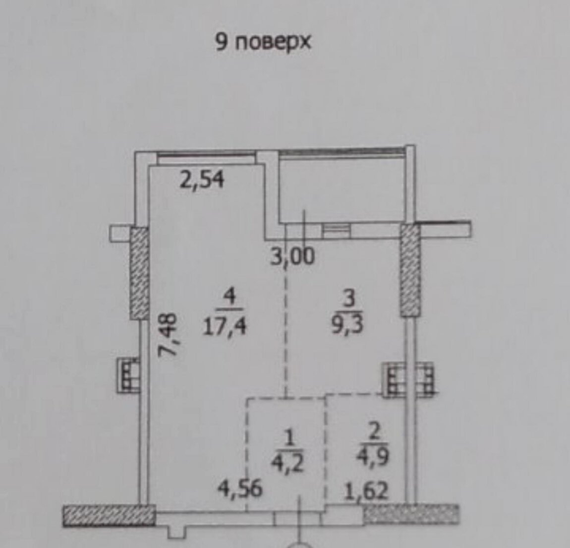 Загальна площа 40 м2, кухня-студія-9,3 м2.