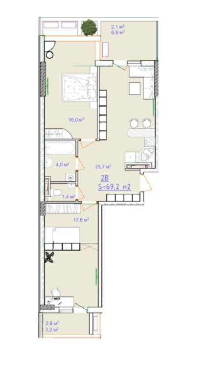 Загальна площа69.2 м²
