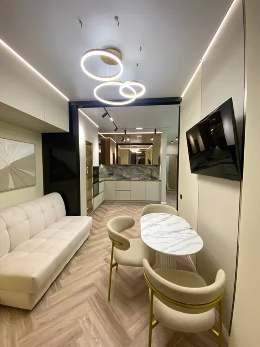 2-х комнатная квартира в Аркадии .Красивый современный ремонт.Кухня-гостиная и спальня, кабинет.Полностью укомплектована мебелью.Теплые полы.Система кондиционирования.Большая гардеробная.Подземный паркинг.Закрытая территория.Прямой вид на море.Звоните. ID 42667