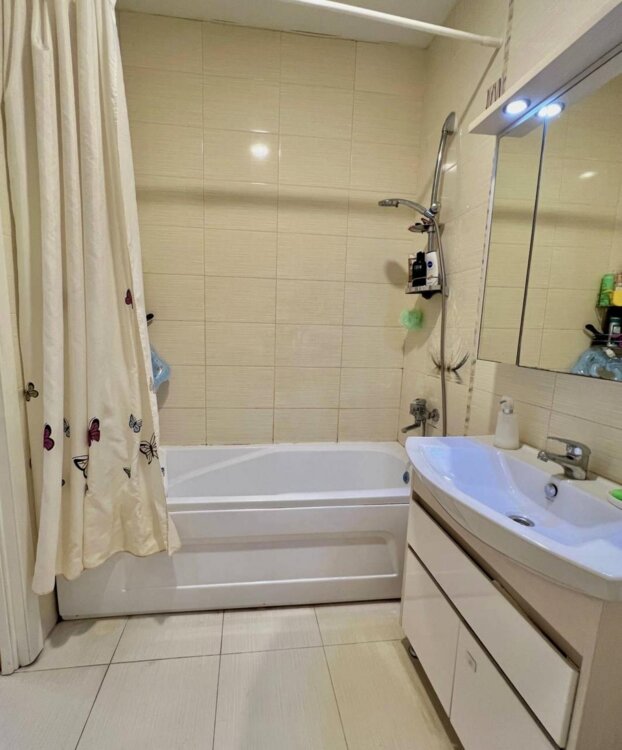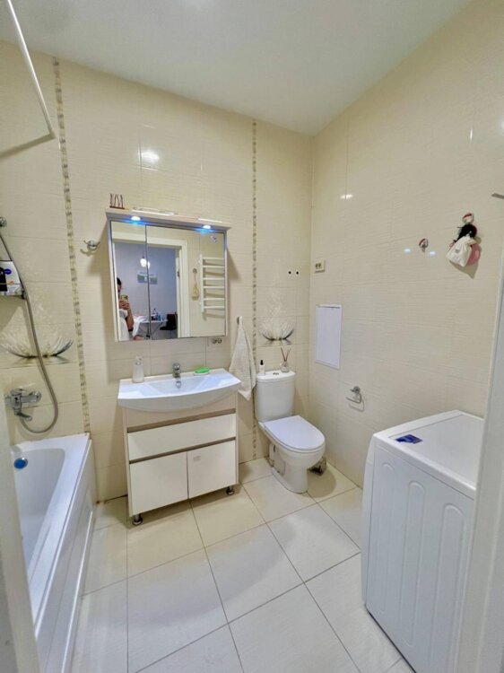 Квартира полностью оборудована мебелью и техникой.