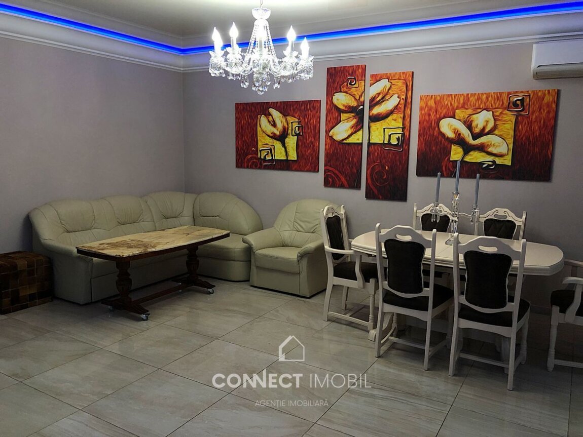 Spre vânzare apartament cu patru camere și living, situat în sectorul Centru, str. Constantin Virnav. Imobilul este situat la etajul 4 din 8, cu o suprafața de 117 m2. Dezvoltator Dansicons. Facilitati: * Reparatie euro; * Incălzire prin pardosea; * Incălzire autonomă; * Total mobilat; * Parcare subterană; * Geamuri termopane; * Teren de joaca; * In vânzare se propune si garaj; În apropiere se află: Bancă, Farmacie, Grădiniță, Piață, Supermarket, Parc. ATENȚIE! Acum poți achita comod în rate cu doar 20% rată inițială sau prin programul guvernamental Prima Casă cu doar 10% prima rată! Compania CONNECT IMOBIL vă ajută în procesul de vînzare-cumpărare a unui imobil, teren sau spațiu comercial, beneficiind de consultanță juridică în domeniul imobiliar și accesarea unui credit ipotecar. TOATE OFERTELE DISPONIBILE LE GĂSIȚI AICI: