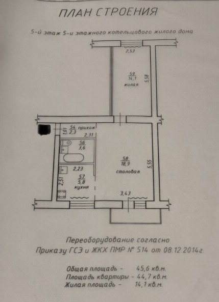 Общая площадь 45,6
