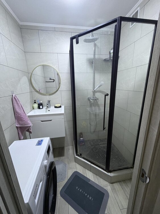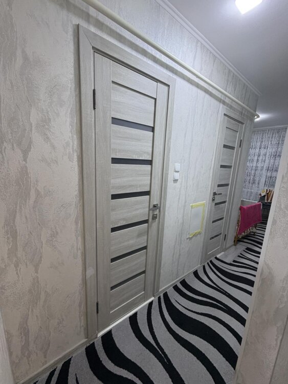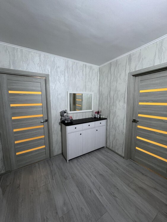 Квартира заходи и живи, ванная и туалет в кафеле, полы ламинат, выравнены потолки, душевая кабина, встроенная кухня остаётся, середина дома. Всё рядом, маршрутки, троллейбус, садик, школа, магазины.