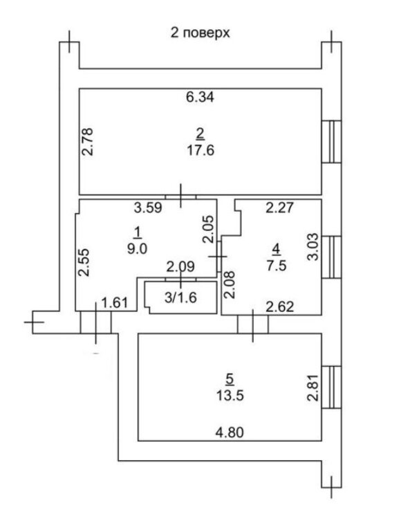 Квартира расположена на 2м этаже, с общей площадью 49, 2 кв м