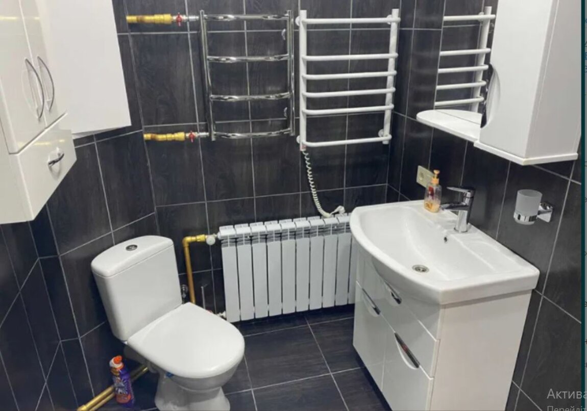 Санузел совмещен с большой ванной. В санузле установлены радиаторы, бойлер, стиральная машина