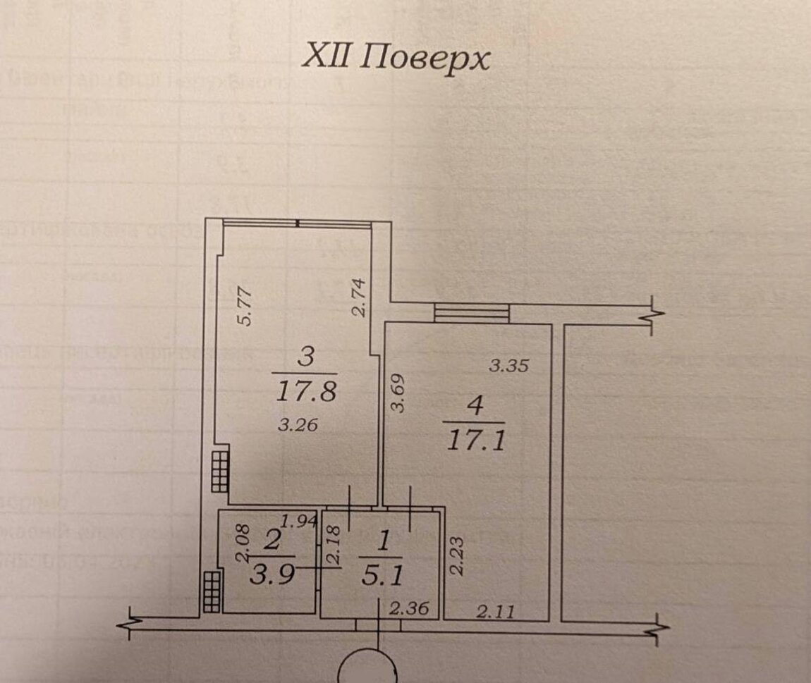 Житлова площа17 м²
