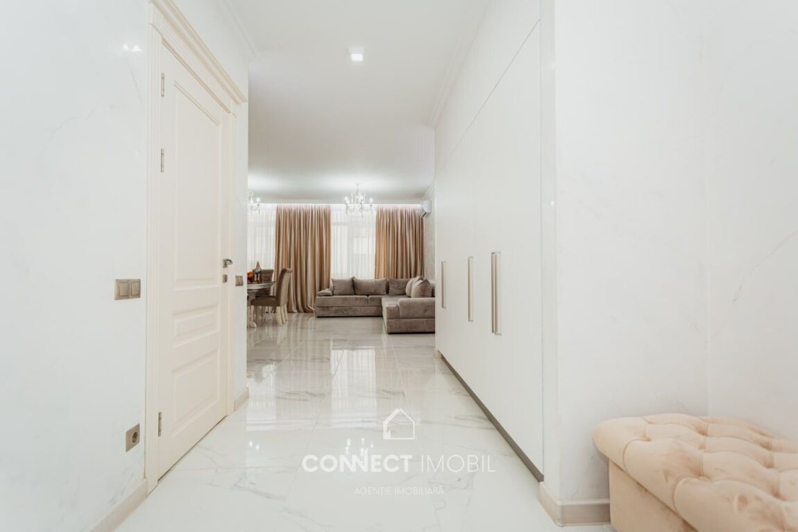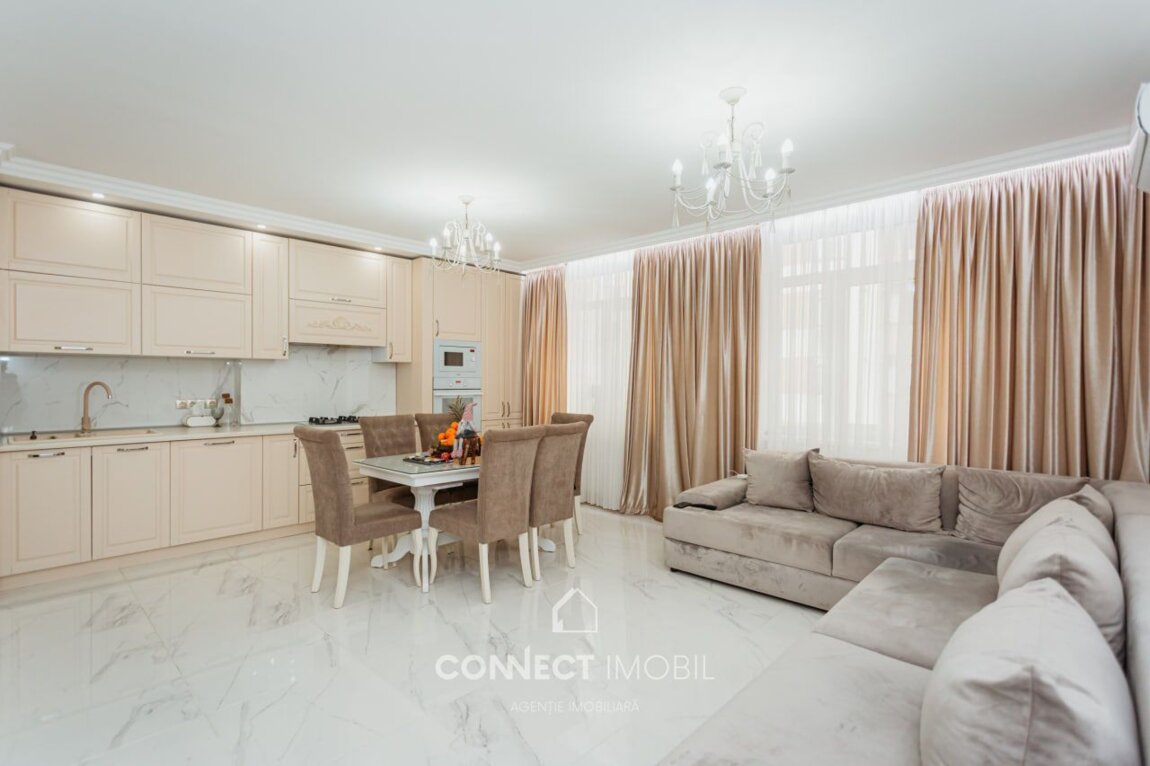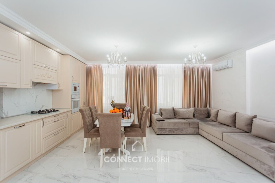 Spre vanzare apartament cu 2 camere si living situat în sectorul Botanica, str. Grenoble. Complexul "Volare Tur". Apartamentul este amplasat la etajul 2 din 10 pe o suprafață utilă de 110 mp. Compartimentat în 2 dormitore, bucătărie cu living spatios, bloc sanitar, dressing room(garderoba) antreu si balcon. Proiect de un design unic, modern, executat cu gust și rafinament din cele mai calitative materiale. Facilități: *euroreparație ( calitate premium ), *dotat cu mobilă și tehnică de ultimă generație, *încălzire autonomă(Bosch), *geamuri termopane(Salamander) * încălzire la pardosea peste tot inafara de dormitoare * ușă blindată * supraveghere video * sistem de aer condiționat * sistem de alarmă (bercut) * pereți din cărămidă * perete dublu pe perimetrul apartamentului * izolare termică și fonică * zonă de parc * ascensoare moderne Curtea blocului este frumos amenajată cu foișoare, teren de joacă pentru copii. Amplasarea este favorabilă, în imediata apropiere de market Linella, școală, grădiniță, etc. Beneficiați de acces simplu și rapid la transportul public care asigură deplasarea cu ușurință spre orice sector al orașului. ATENȚIE! Acum poți procura comod în rate de la 30% rată inițială sau prin programul guvernamental Prima Casă Plus cu doar 10% prima rată! Compania CONNECT IMOBIL vă ajută în procesul de vînzare-cumpărare a unui imobil, teren sau spațiu comercial, beneficiind de consultanță juridică în domeniul imobiliar și accesarea unui credit ipotecar. TOATE