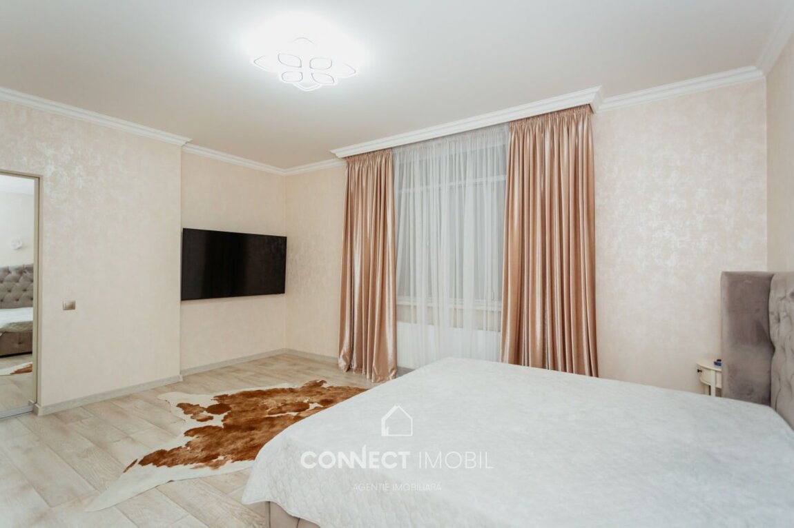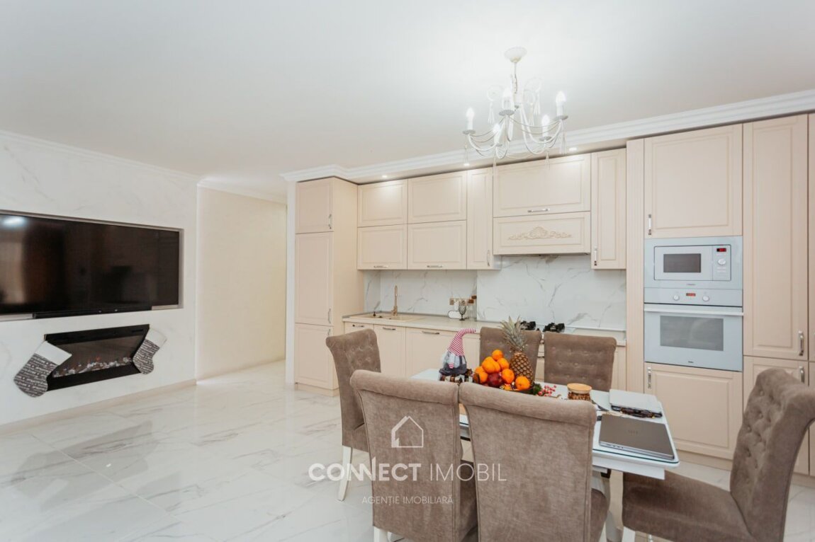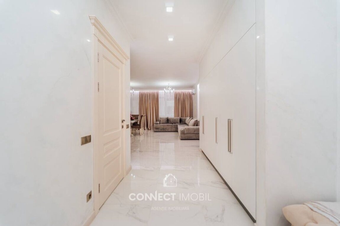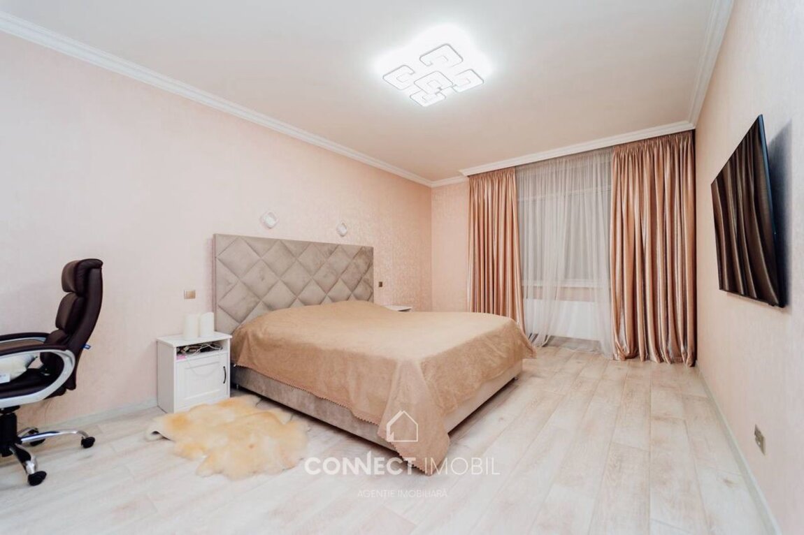 Spre vanzare apartament cu 2 camere si living situat în sectorul Botanica, str. Grenoble. Complexul "Volare Tur". Apartamentul este amplasat la etajul 2 din 10 pe o suprafață utilă de 110 mp. Compartimentat în 2 dormitore, bucătărie cu living spatios, bloc sanitar, dressing room(garderoba) antreu si balcon. Proiect de un design unic, modern, executat cu gust și rafinament din cele mai calitative materiale. Facilități: *euroreparație ( calitate premium ), *dotat cu mobilă și tehnică de ultimă generație, *încălzire autonomă(Bosch), *geamuri termopane(Salamander) * încălzire la pardosea peste tot inafara de dormitoare * ușă blindată * supraveghere video * sistem de aer condiționat * sistem de alarmă (bercut) * pereți din cărămidă * perete dublu pe perimetrul apartamentului * izolare termică și fonică * zonă de parc * ascensoare moderne Curtea blocului este frumos amenajată cu foișoare, teren de joacă pentru copii. Amplasarea este favorabilă, în imediata apropiere de market Linella, școală, grădiniță, etc. Beneficiați de acces simplu și rapid la transportul public care asigură deplasarea cu ușurință spre orice sector al orașului. ATENȚIE! Acum poți procura comod în rate de la 30% rată inițială sau prin programul guvernamental Prima Casă Plus cu doar 10% prima rată! Compania CONNECT IMOBIL vă ajută în procesul de vînzare-cumpărare a unui imobil, teren sau spațiu comercial, beneficiind de consultanță juridică în domeniul imobiliar și accesarea unui credit ipotecar. TOATE
