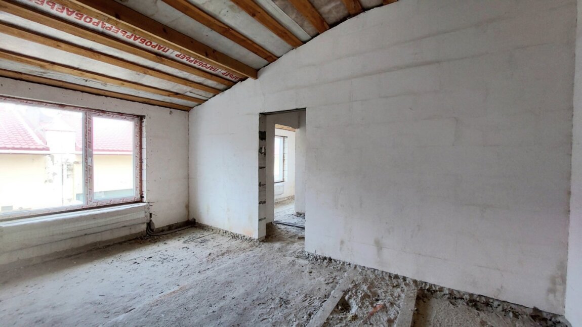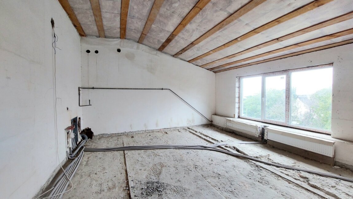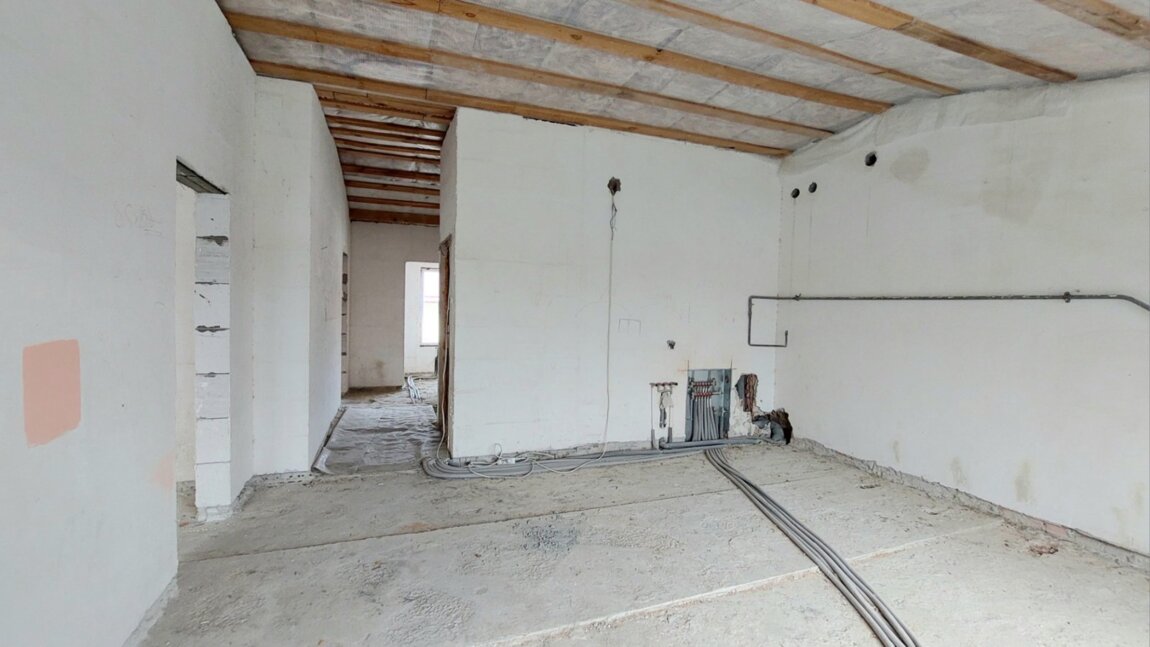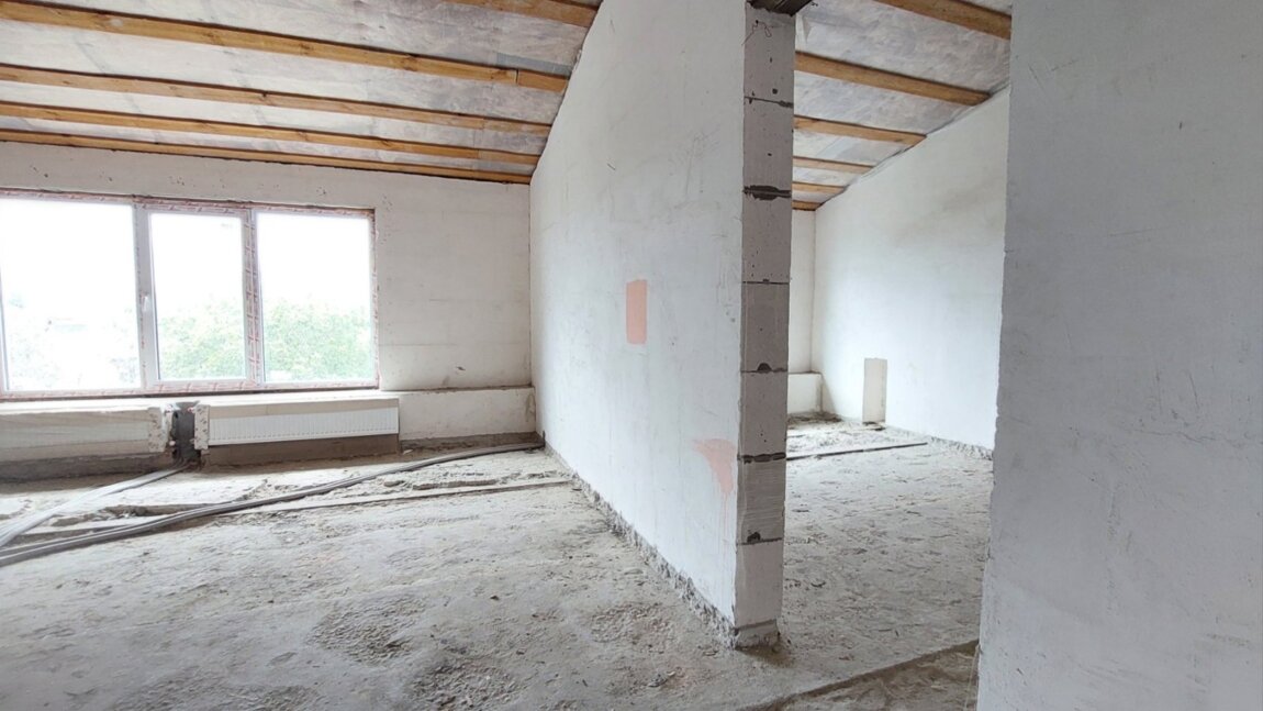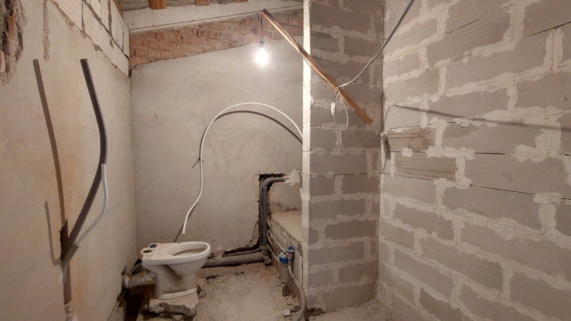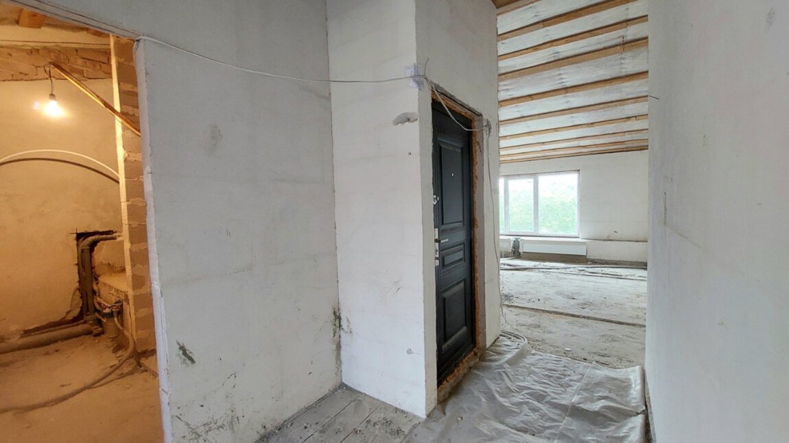 Полностью сделана разводка сантехники, межкомнатные перегородки, установлены радиаторы, качественные стеклопакеты.