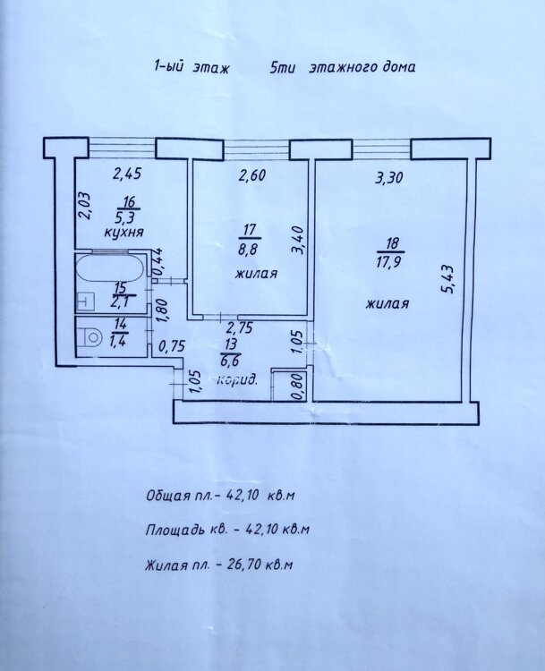 * Об. пл. - 42 кв. м. Квартира расположена на 1-ом этаже (5и этажка).
