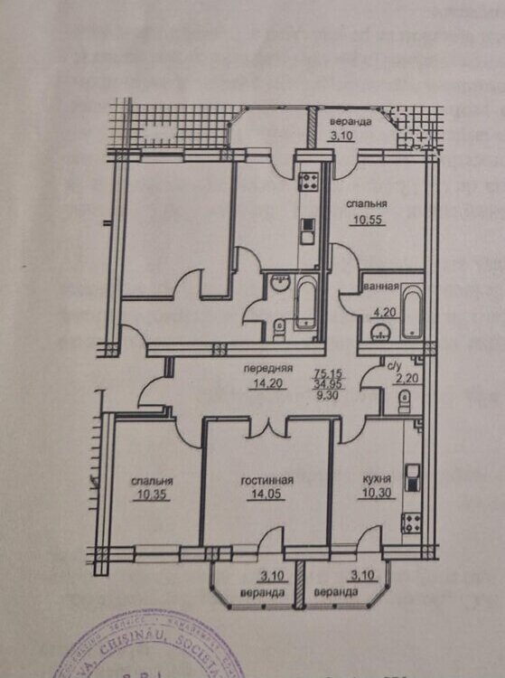 Общая площадь: 75,15 м²