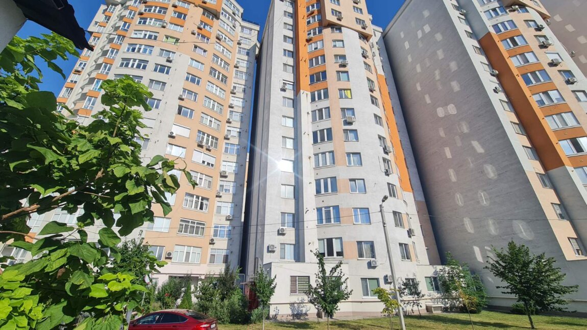 Квартира, расположенная в центре, г. Кишинёв, ул. Мелестью 26/5, 15 этаж из 17, общая площадь: 93 м², 2 отдельные комнаты, кухня, санузел, балкон, гардеробная.