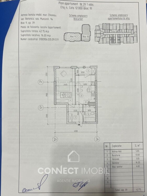 Se vinde un apartament situat pe şos. Munceşti, Botanica. Dezvoltator de încredere: Sky House. Clădirea urmează să fie dată în folosință în anul 2026. Caracteristici principale: - Apartament cu o cameră; - Suprafață: 42,75 m²; - Încălzire autonomă; - Amenajare modernă; - Finisaj alb; - Etajul 4 din 16; Locație: Apartamentul se află într-o zonă rezidențială. În apropiere, la distanță de mers pe jos, se află supermarketuri, școli, grădinițe și alte facilități necesare pentru un trai confortabil. Compania CONNECT IMOBIL vă ajută în procesul de vânzare-cumpărare a unui imobil, teren sau spațiu comercial, beneficiind de consultanță juridică în domeniul imobiliar și accesarea unui credit ipotecar. TOATE OFERTELE DISPONIBILE LE GĂSIȚI AICI