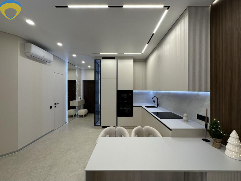 Продаётся красивая кухня - студия и спальня в ЖК " Лимнос"/ Педагогическая. Общая площадь 52 м. 25/26 эт. Дизайнерский ремонт. Укомплектована мебелью и бытовой техникой, два кондиционера, много места для хранения вещей. Есть гардеробная. Теплые полы. Открытый балкон с видом на море. В доме есть подземный паркинг, генератор